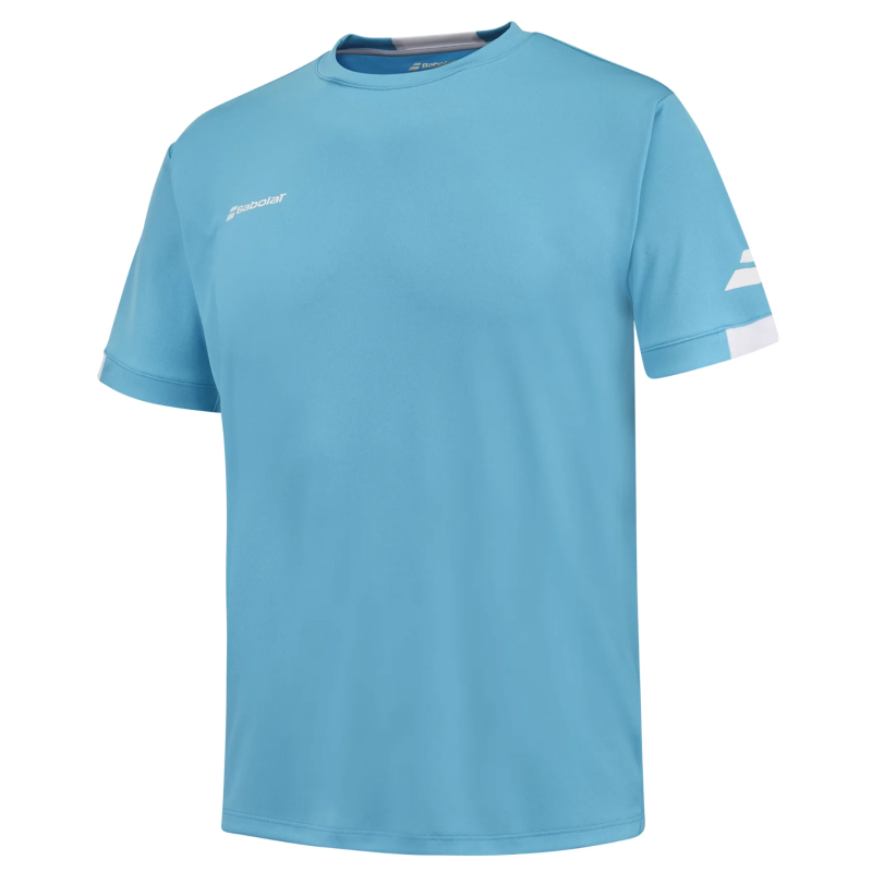 The Babolat Play Crew Neck Tee Cyan Blue is a reliable choice for junior tennis players who want comfort, durability, and standout style on court.