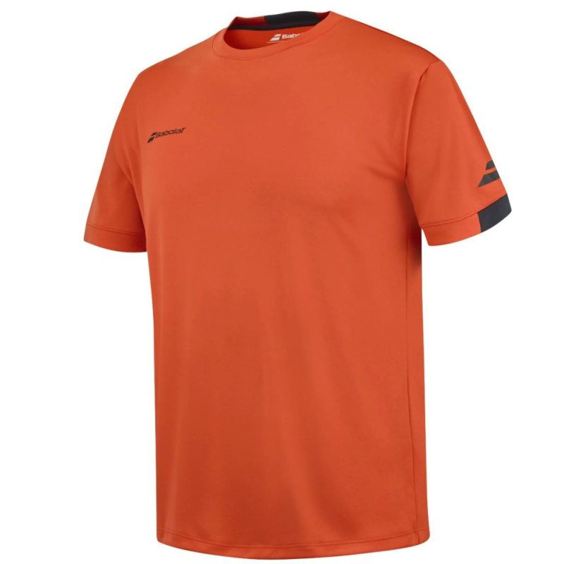 The Babolat Play Crew Neck Tee Fiesta Red is perfect for young players seeking comfort, durability, and style on the tennis court.