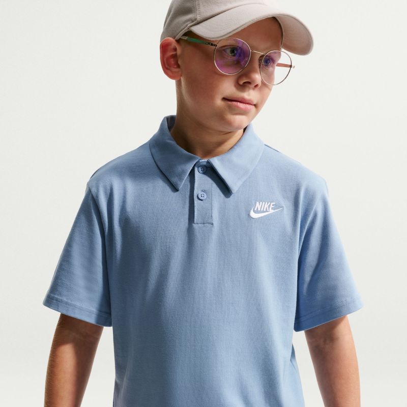 Nike Sportswear Club Big Kids' Knit Short‑Sleeve Polo – IF2841‑486 Work Blue