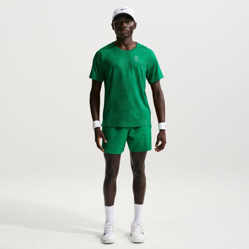 Elevate your on-court performance with the Nike NKCT DriFit Advantage Top Print in Malachite. Designed for competitive play, this slim-fit men's tennis top combines advanced sweat-wicking technology with breathable comfort to keep you cool during high-intensity matches.