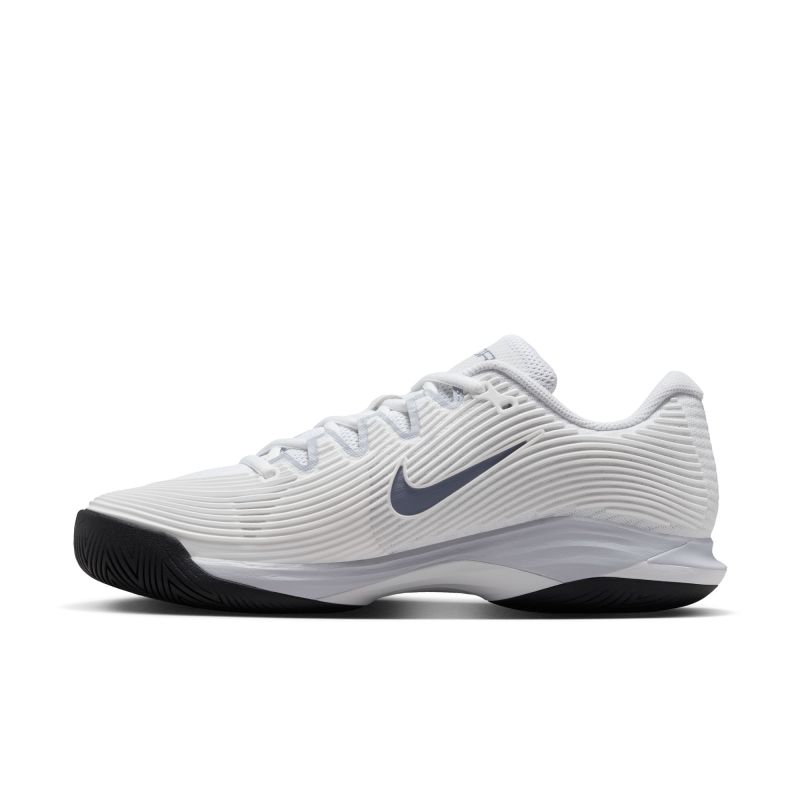 Equipped with a heel Air Zoom unit for springy cushioning and responsive energy return, the Vapor 12 keeps you supported during intense rallies. The herringbone traction pattern made with a new lightweight rubber compound allows quick stops, sharp cuts, and smooth directional changes. A firm midfoot plastic plate ensures optimal stability, while the engineered mesh upper maintains durability and breathability in high-wear zones.