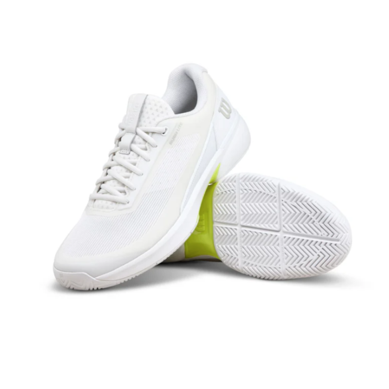 Underfoot, the R-DST+ midsole delivers responsive cushioning, absorbing impact while returning energy with each step, reducing fatigue and helping players stay quick and agile throughout the match. The Durable Duralast® outsole ensures reliable traction across hard courts and other surfaces, with reinforced high-wear areas that increase longevity and durability, even for players who train daily.