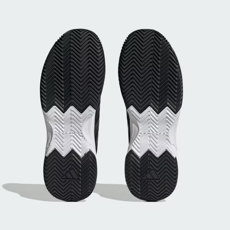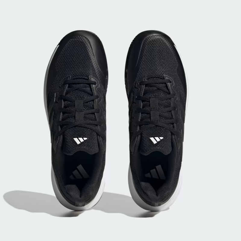 Introducing the adidas GameCourt 2 Men's Tennis Shoes in Core Black/Grey Four (Model IG9567), designed to provide comfort and performance for tennis players.