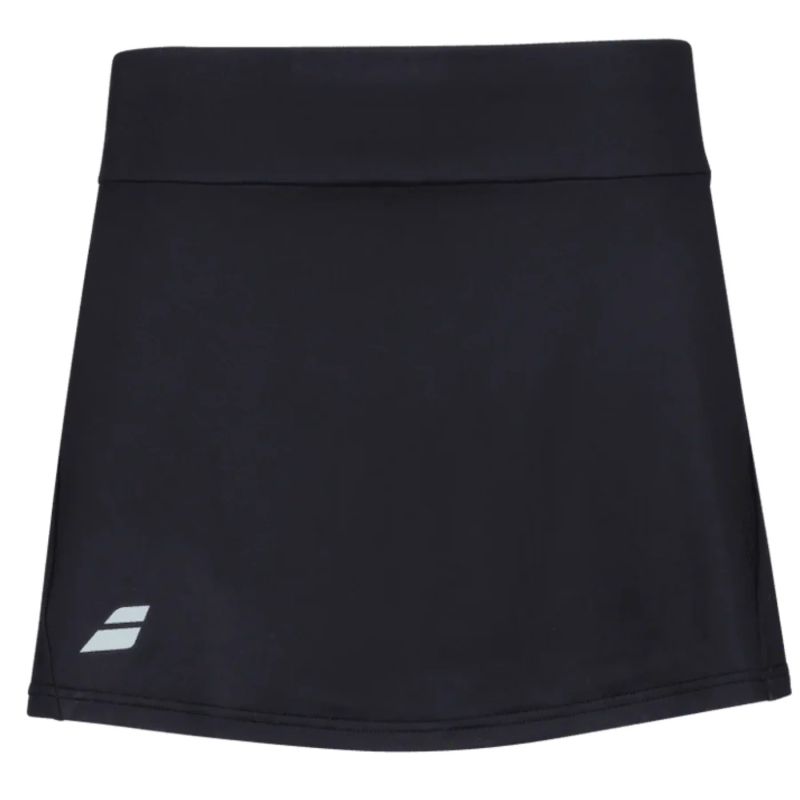 Made from a lightweight, high-stretch polyester blend, the skirt features integrated compression shorts that provide added coverage and support. The elastic waistband ensures a snug yet flexible fit, allowing her to move freely through every serve, sprint, and swing. Its classic black color offers versatile style that pairs effortlessly with any tennis top, while the subtle Babolat logo adds a premium finishing touch.