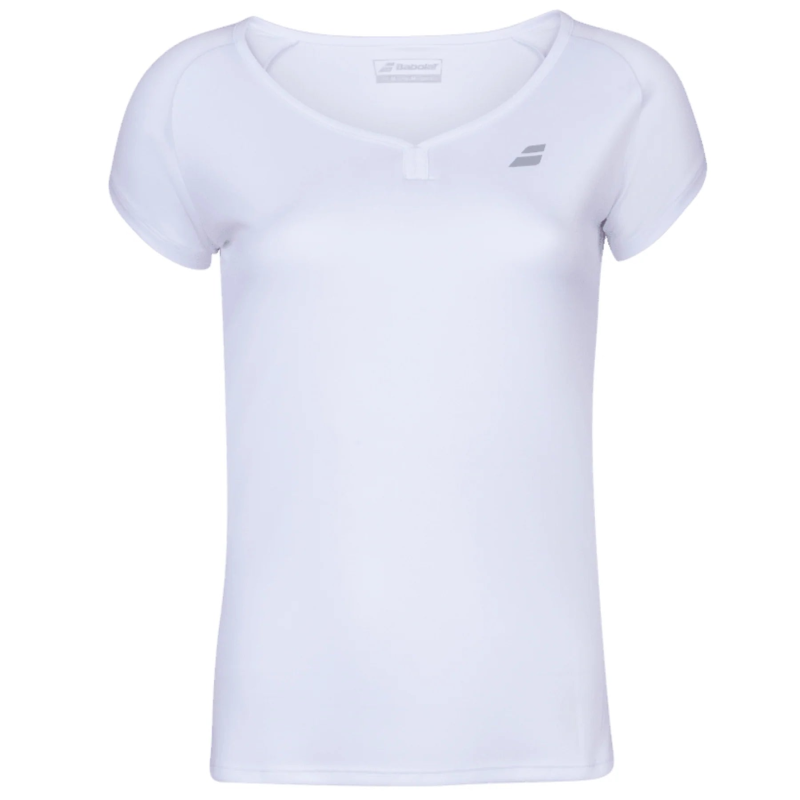 Featuring a modern cap sleeve design, this tennis top provides optimal comfort and shoulder mobility. Its classic white color gives a clean, professional look that pairs effortlessly with any tennis skirt or short, while subtle Babolat branding adds a sporty edge. Whether she's practicing, competing, or training, this top delivers all-day comfort and durability with a stylish twist.
