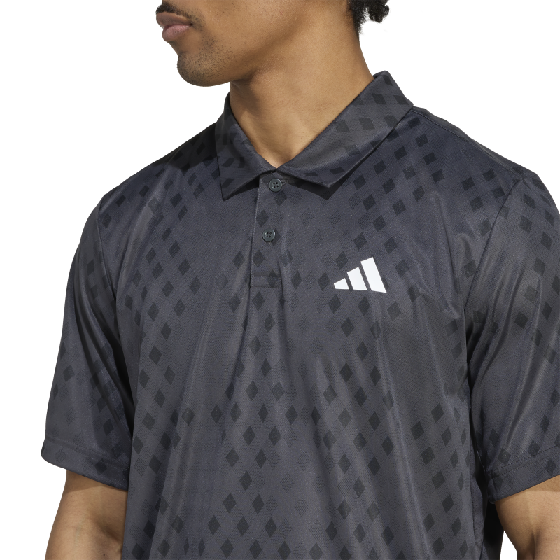 Bold graphics meet high performance in the Adidas Club Graphic Polo JM1205. Designed for players who want to stand out, this carbon grey polo fuses AEROREADY moisture-wicking tech with breathable mesh inserts, so you stay dry and comfortable through every set.