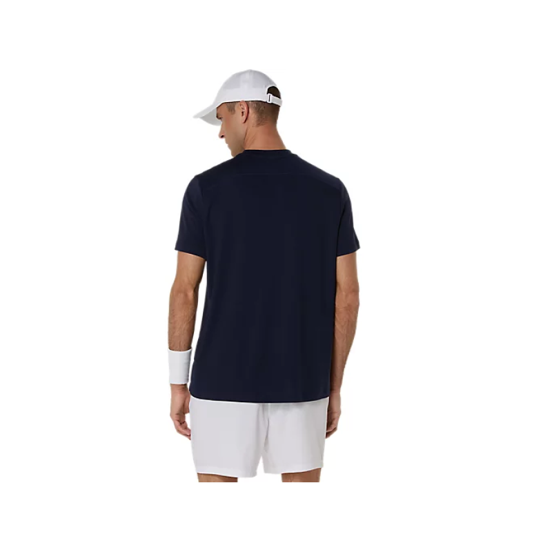 The Asics Court SS Top 2041A339-400 in Midnight is a premium men's tennis shirt designed to deliver superior comfort and performance on the court. Crafted with lightweight and breathable fabric, this short-sleeve top incorporates moisture-wicking technology to keep you cool and dry during intense matches.