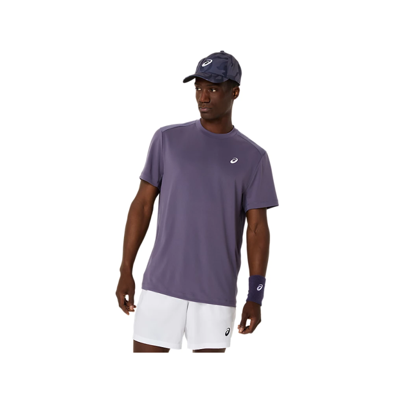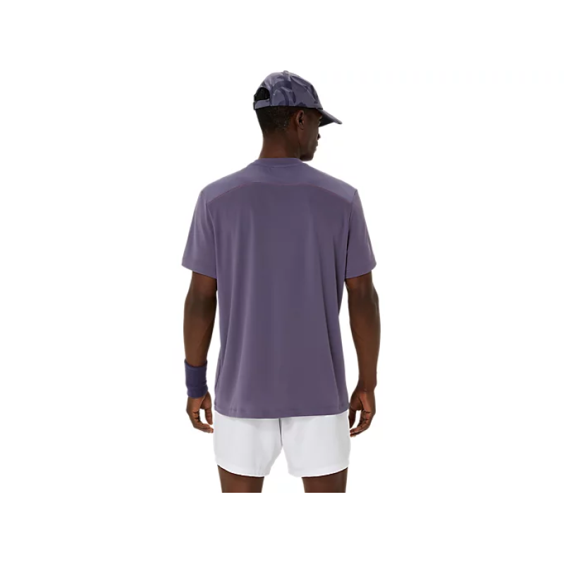 The ASICS Men's Court Short Sleeve Top in Greyish Purple (style number 2041A339-500) is designed to provide comfort and performance on the court.