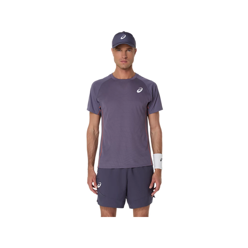 The ASICS Men's Match Actibreeze Short Sleeve Top in Greyish Purple (style number 2041A320-500) is engineered to enhance your performance on the court with its advanced features and comfortable design.