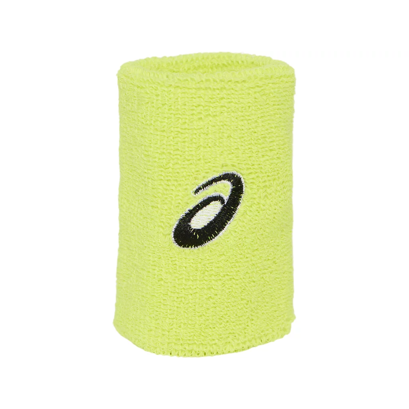 The ASICS Wristband (model 3043A077-750) in Safety Yellow is designed to provide comfort and absorb sweat during sports activities. This 2-pack includes two wristbands made from a soft, stretch-woven fabric that effectively wicks away moisture, keeping you dry and comfortable. The wristbands are adorned with the ASICS Spiral logo for a touch of brand identity.