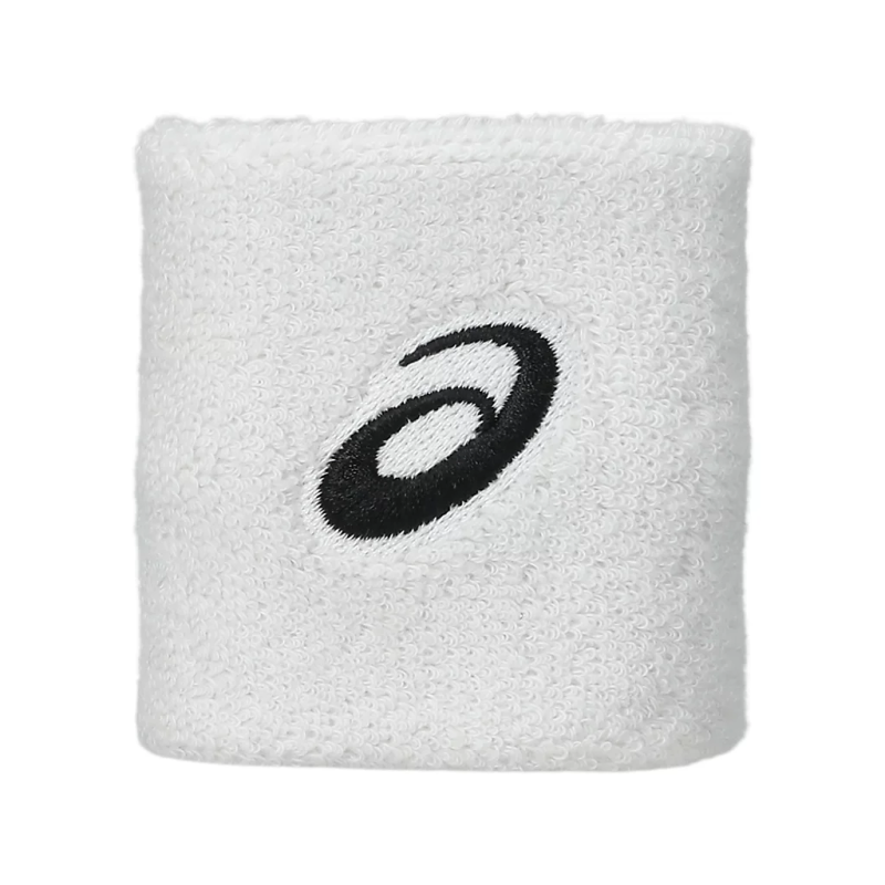 The ASICS Wristband (model 3043A120-100) in White is designed to provide comfort and absorb sweat during sports activities. This 2-pack includes two wristbands made from a soft, stretch-woven fabric that effectively wicks away moisture, keeping you dry and comfortable. The wristbands are adorned with the ASICS Spiral logo for a touch of brand identity.