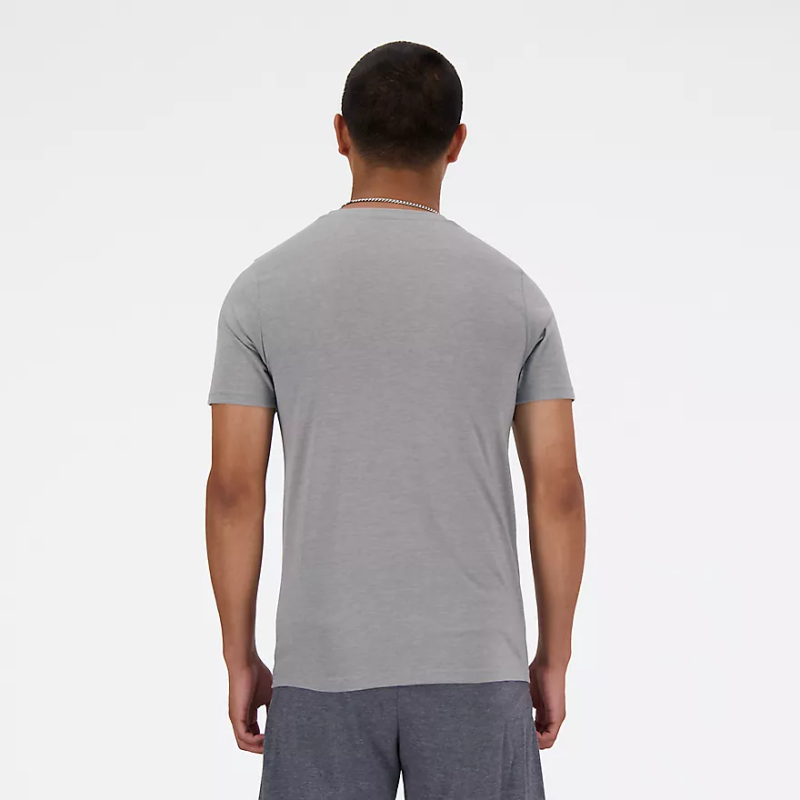 Featuring a classic crewneck and athletic fit, this tee provides a flattering silhouette that enhances your natural movement. The moisture-wicking material helps keep you dry and comfortable, making it a great choice for high-energy workouts or hot days. With subtle New Balance branding, the Heather Tee strikes the right balance between sporty and stylish, perfect for the modern man on the go.