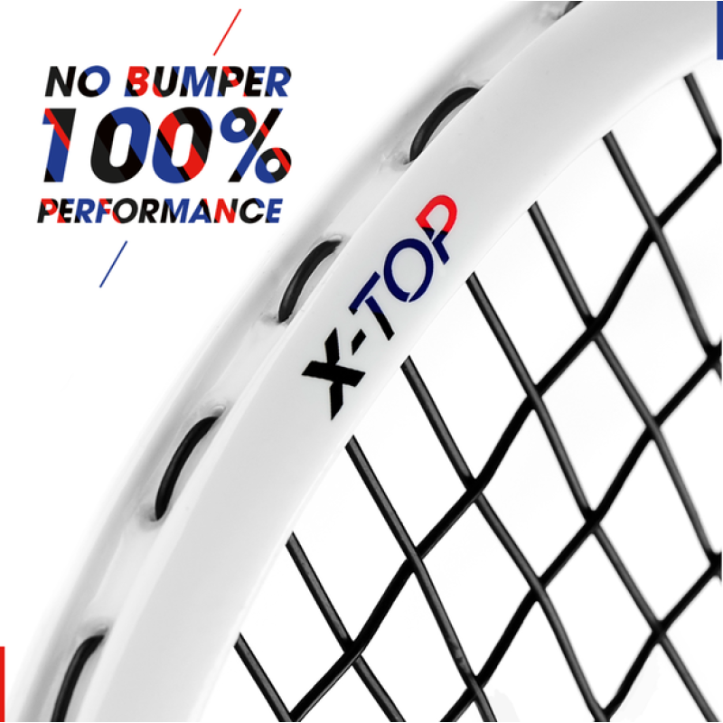 Equipped with Tecnifibre’s revolutionary X-Top Technology, the bumperless design eliminates excess drag and vibration by reinforcing the racquet’s top with Aramid fibers — a material used in ballistic gear for its extreme strength and resistance. This improves racquet head speed while maintaining excellent durability even under intense match play.