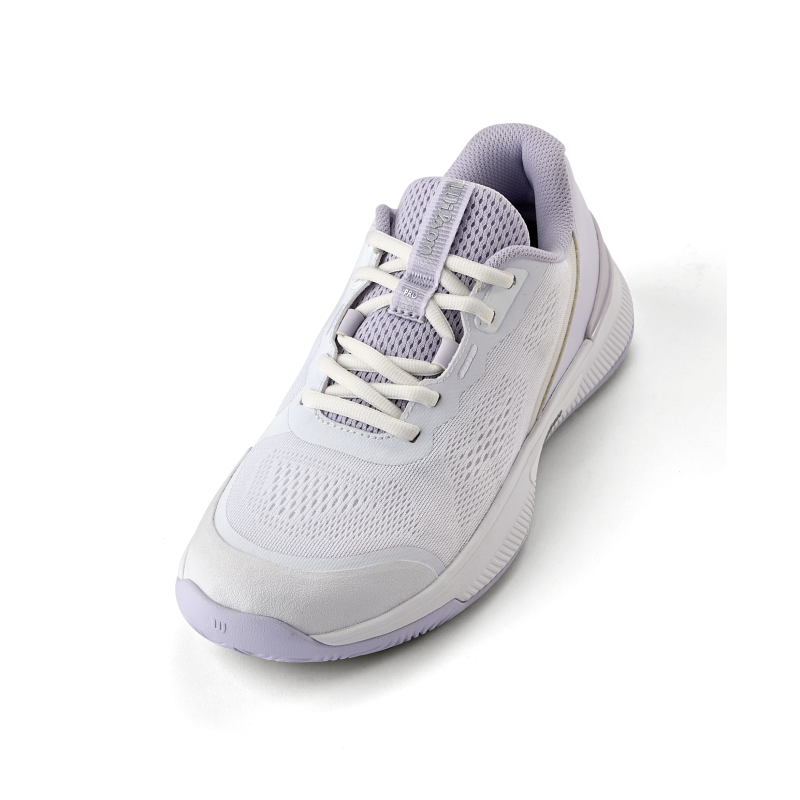 The Wilson Intrigue Pro is a high-performance ladies' tennis shoe designed for comfort, durability, and agility on the court. Featuring R-DST+™ cushioning, this shoe delivers superior shock absorption and energy return, reducing fatigue during long matches. The Duralast™ rubber outsole ensures excellent traction and durability, while the breathable mesh upper enhances ventilation for a cool and comfortable fit.
