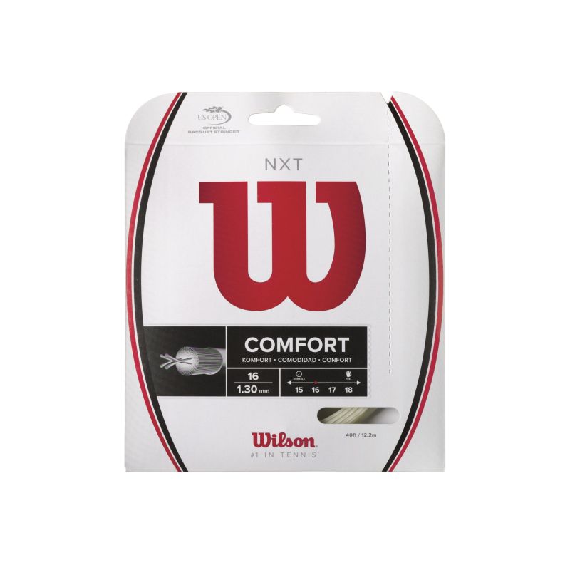 - The Wilson NXT 1.30mm 12.2m Set is a premium synthetic gut tennis string designed for players seeking comfort, power, and durability. With a 1.30mm gauge, this string offers a perfect blend of playability and feel, making it ideal for players who value control and comfort. Its unique construction incorporates multifilament fibers to replicate the feel of natural gut while offering enhanced durability. Whether you're a recreational or competitive player, the 12.2m set provides enough length for a full racquet stringing. Elevate your game with the reliable and high-performing Wilson NXT tennis string.