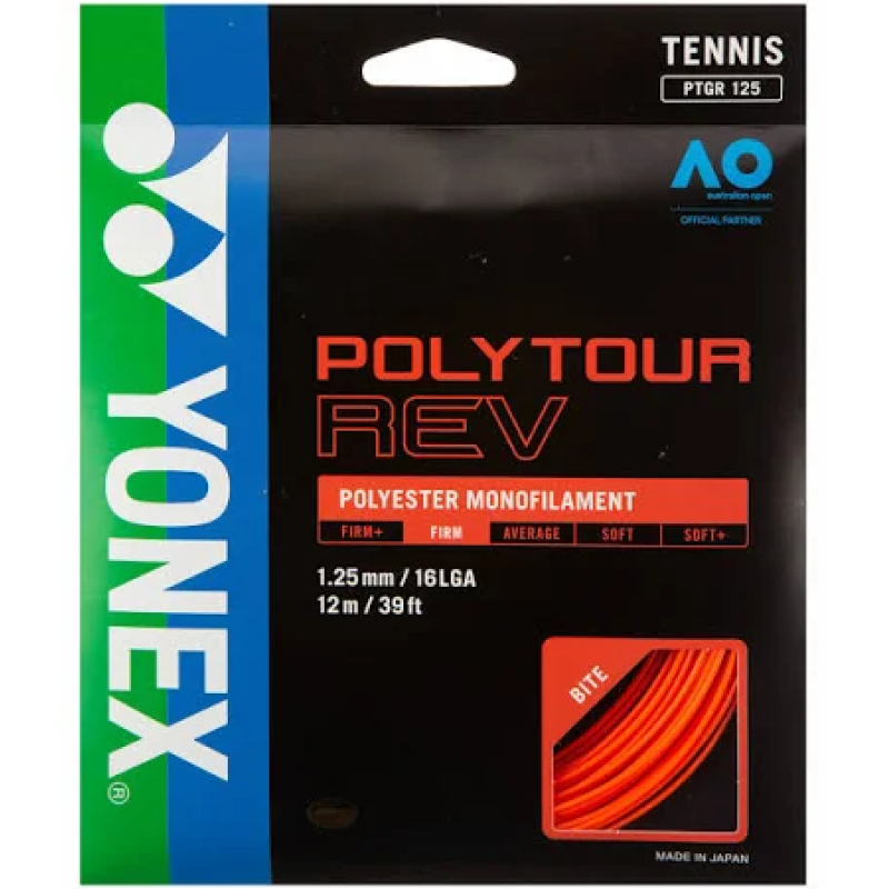Take your game to the next level with the Yonex Poly Tour Rev 1.25mm Set in eye-catching orange. Engineered for players who seek unparalleled spin and control, this high-quality tennis string is crafted using advanced materials to provide an exceptional playing experience.