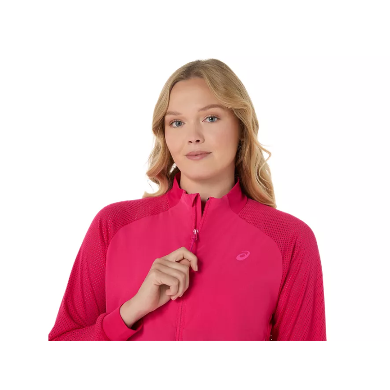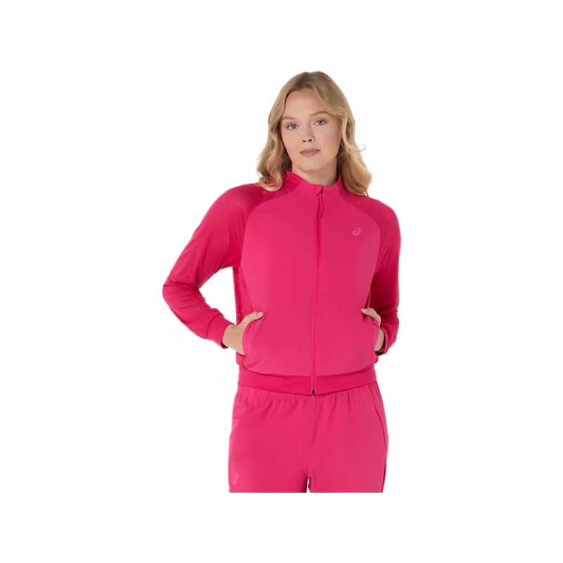 Warm up in confidence and colour — shop the ASICS Match Jacket 2042A364-725 Bright Rose now at Tennis Ranch.