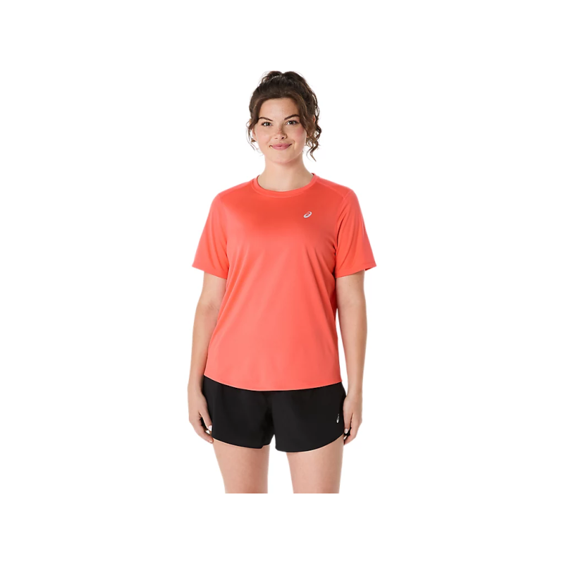 The Asics Silver Short Sleeve Top in Coral Reef is designed for women who seek comfort, breathability, and performance in their activewear. Made with lightweight, moisture-wicking fabric, this top keeps you dry and comfortable whether you're training, running, or hitting the gym. The soft knit fabric provides a smooth feel against the skin, while the classic crew neck and regular fit offer a versatile and flattering look.
